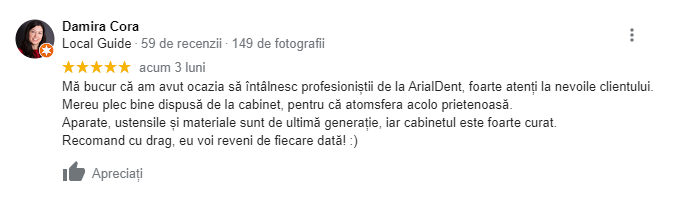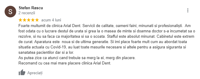recenzie arial dent clinică stomatologică cluj 3